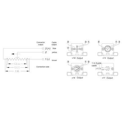 Lineaire potentiometer 275 mm met koppeling op de as M6. Leverbare slaglengte 50 mm t/m 900 mm Waterdicht IP60 standaard, IP65 optioneel Elektrische aansluiting leverbaar: LT-H met 3-pin bajonetconnector LT-M met 4-pin connector DIN43650 LT-B met 5-pin connector DIN43322 LT-F met 3-aderige pvc kabel
