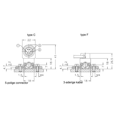 De PY2-serie potentiometers met bewegende as is speciaal ontworpen voor compacte (dikte) metingen. De bewegende as loopt door het sensorhuis heen waarbij deze zowel aan de in- en uitgangszijde gelagerd is. Deze constructie maakt de PY2 robuust en optimaal uitgelijnd. PY2 heeft een terugslagveer op de as, waarmee na elke meting de sensor terugkeert in de nul-positie. De punt van de as is afgerond zodat het meetobject niet beschadigd wordt. Door de geringe afmetingen is deze potentiometer zeer geschikt wanneer de inbouwruimte beperkt is en de meetafstand kort. Toegepast in bijvoorbeeld testbanken in laboratoriumomgeving, geotechniek, sorteermachines. Leverbare slaglengte 10 mm t/m 100 mm Lineaire potentiometer 50 mm Askoppeling: M4 Elektrische weerstand: 5 kOhm Beschermklasse IP40 Elektrische aansluiting: 3-aderige kabel (uitvoering kabellengte 20 m) Tevens leverbaar: - 5-pin connector DIN43322 = type PY2-C