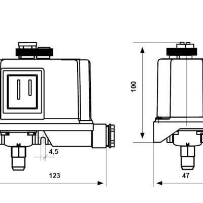 Drukschakelaar 1÷10 Bar, diff. 0,3÷1,5 Bar. IP65, Drukaansluiting G1/4" buitendraad, 16/6A 250Vac.